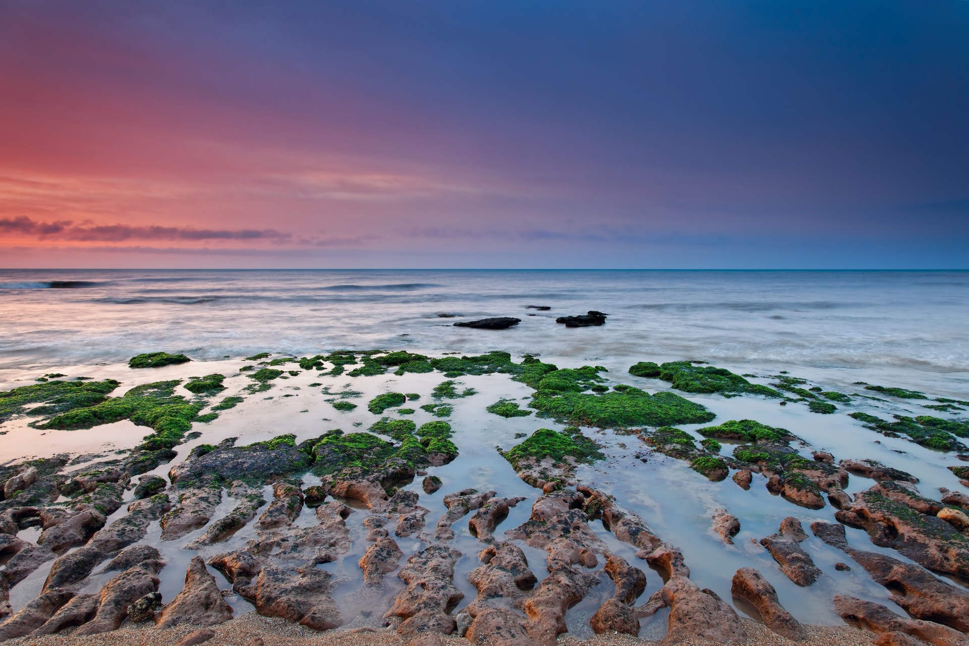 Cielo pintado de diferentes colores y arrecifes en el marCielo pintado de diferentes colores y arrecifes en el mar