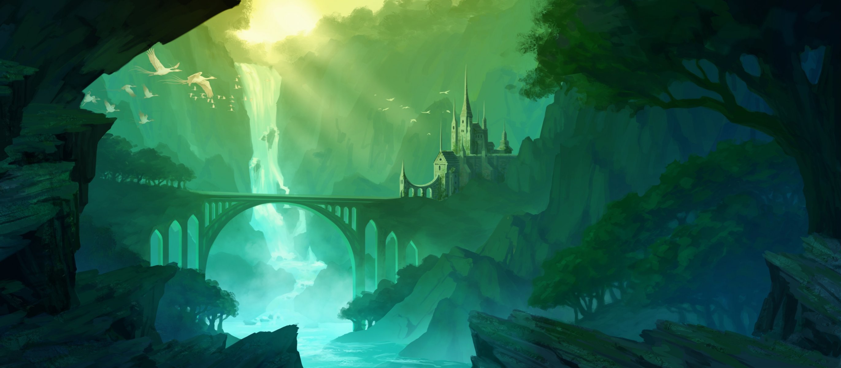 Un joven y una niña regresan de un paseo a caballo a un castillo ubicado en las colinasUn joven y una niña regresan de un paseo a caballo a un castillo ubicado en las colinas