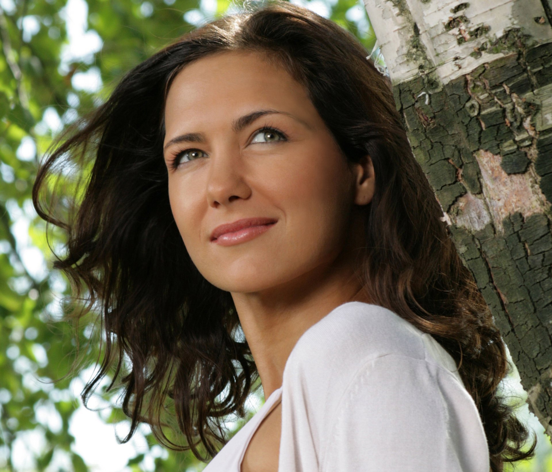 Chica con el pelo oscuro en un vestido de verano sentado en la hierba secaChica con el pelo oscuro en un vestido de verano sentado en la hierba seca