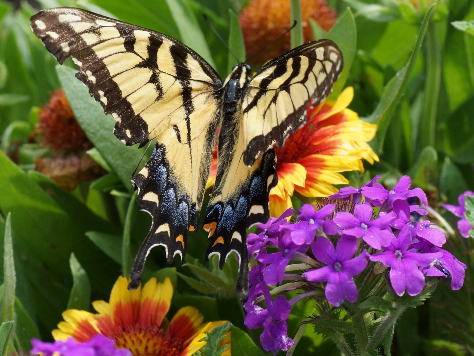 Fondo de fantasía con cintas de colores, flores y el resplandor de las rayas de colores