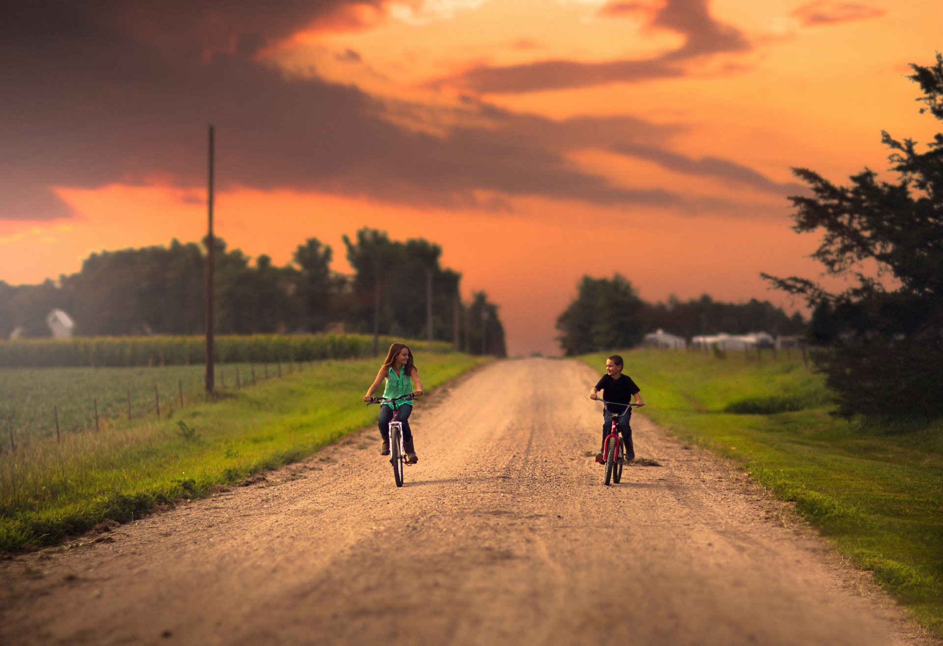 Pintura con cielo estrellado, bicicleta y Luna triste