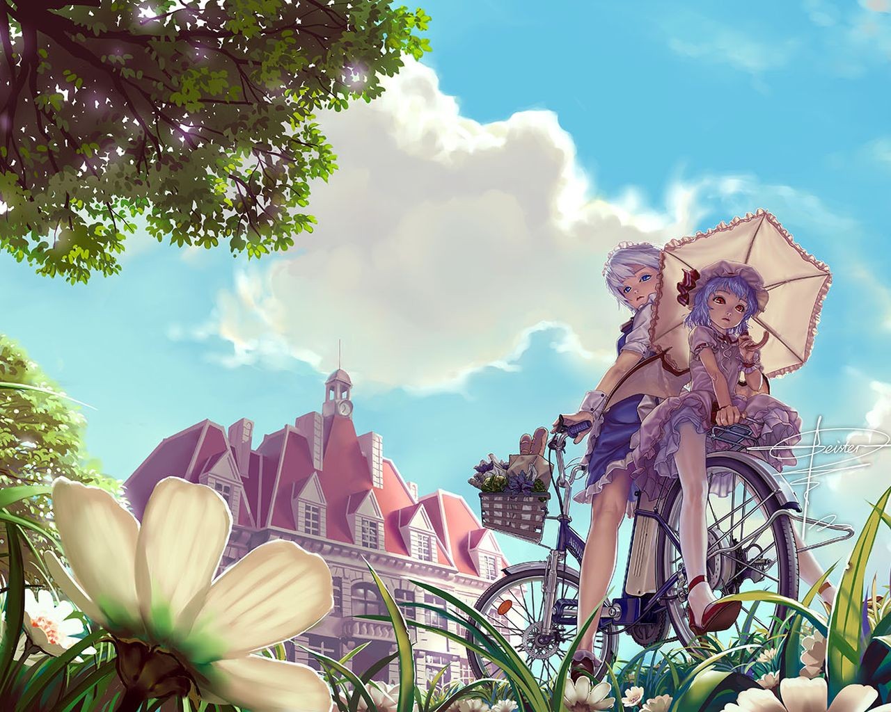 Una niña en una bicicleta en el fondo de un hermoso edificioUna niña en una bicicleta en el fondo de un hermoso edificio