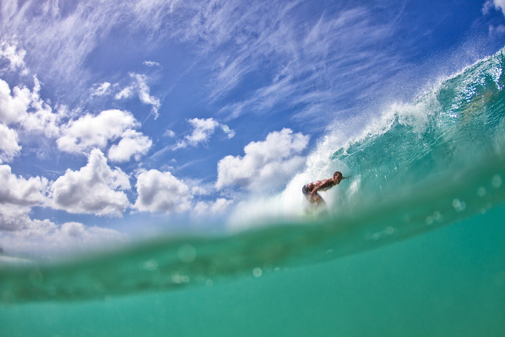 En el cielo azul vuela un avión dejando dos huellas blancas