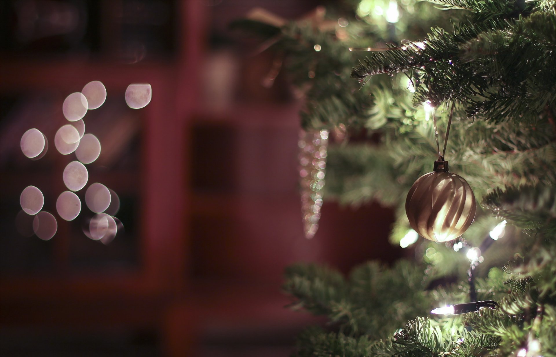 Un golpe de juguete en una rama de árbol de navidadUn golpe de juguete en una rama de árbol de Navidad