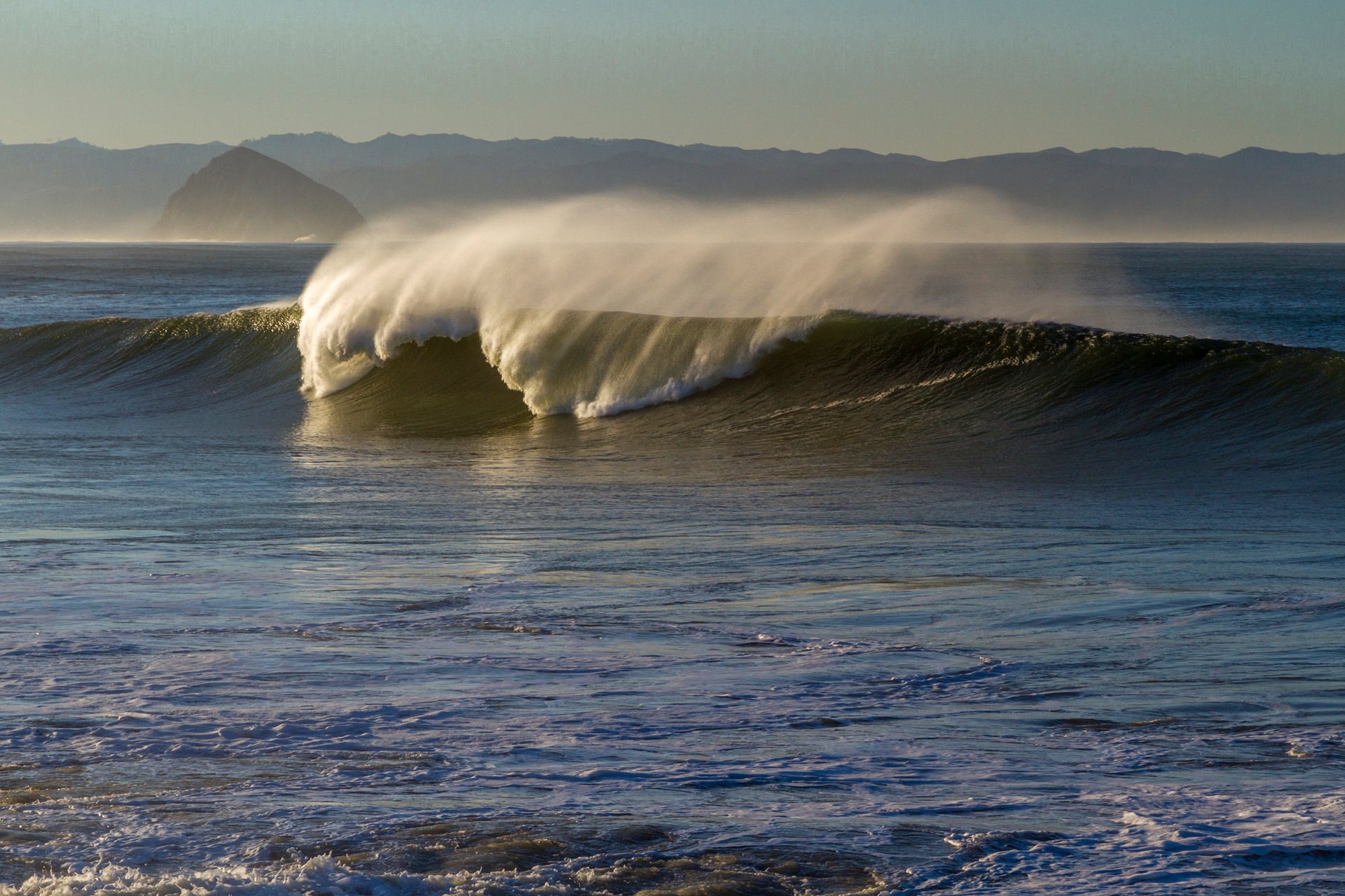 Los restos de un puente en el océano en el color del cielo rosado de la puesta del solLos restos de un puente en el océano en el color del cielo rosado de la puesta del sol