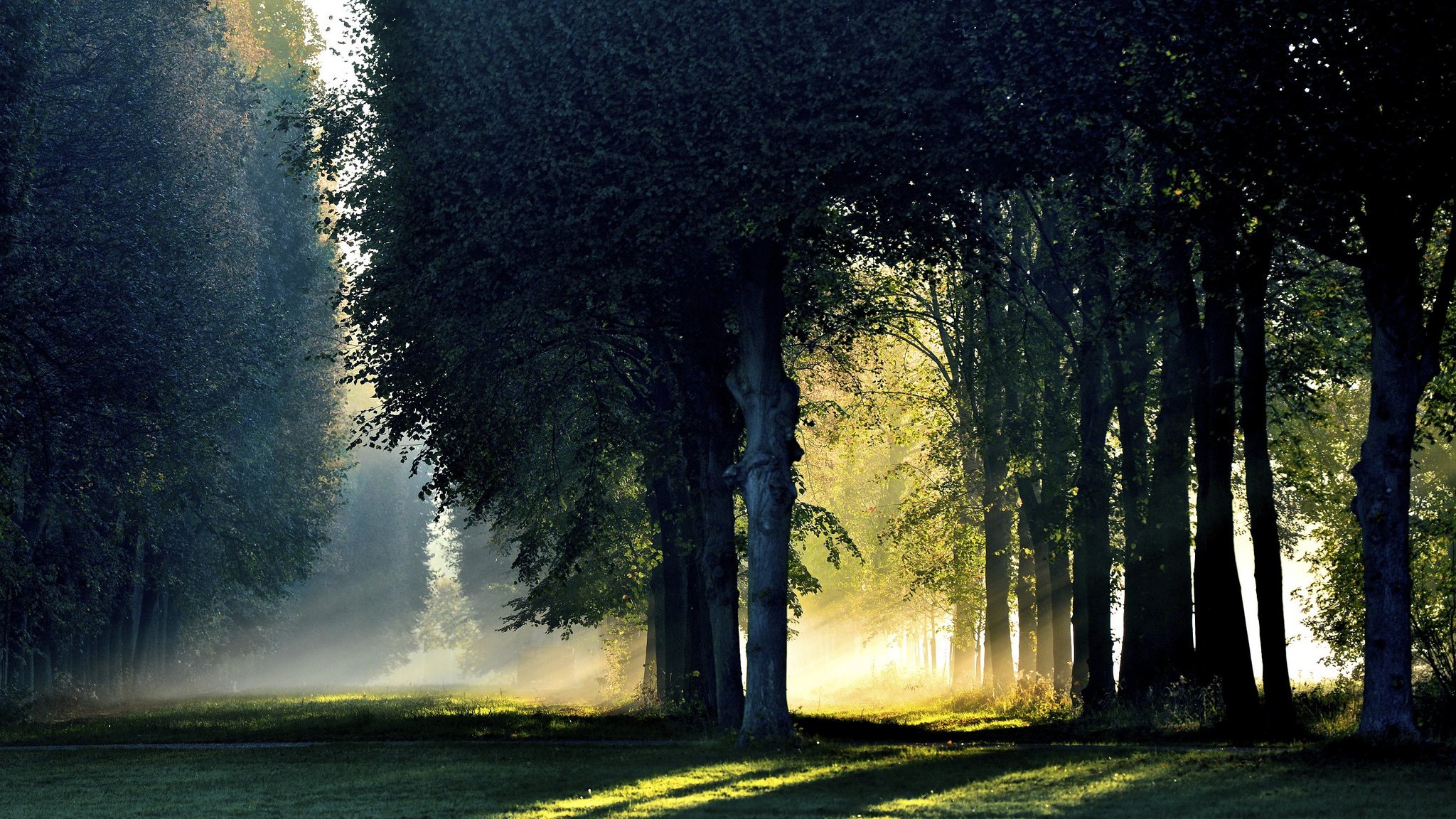 Niebla sobre el bosque de otoño, reflejo en el lago