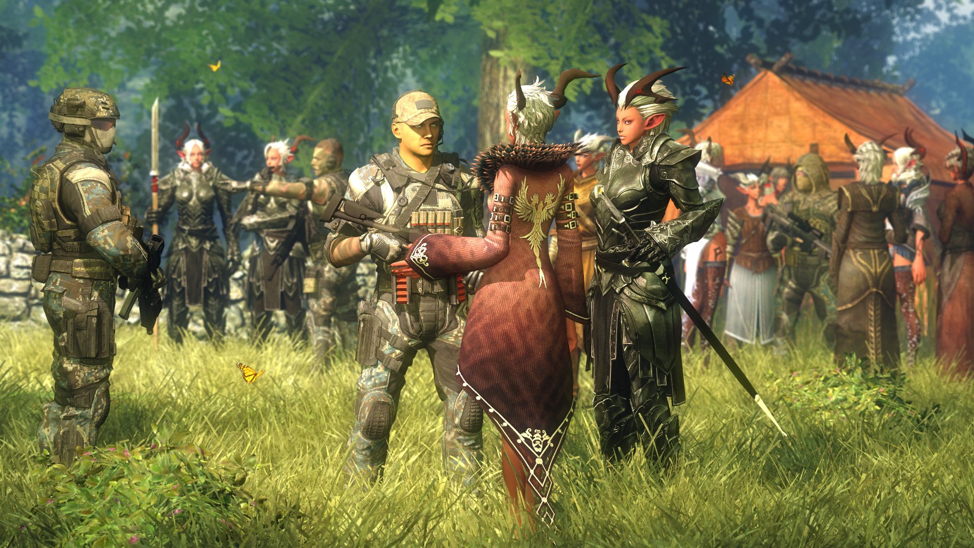 Dragón y elfo a orillas de un lago cubierto de nieveDragón y elfo a orillas de un lago cubierto de nieve