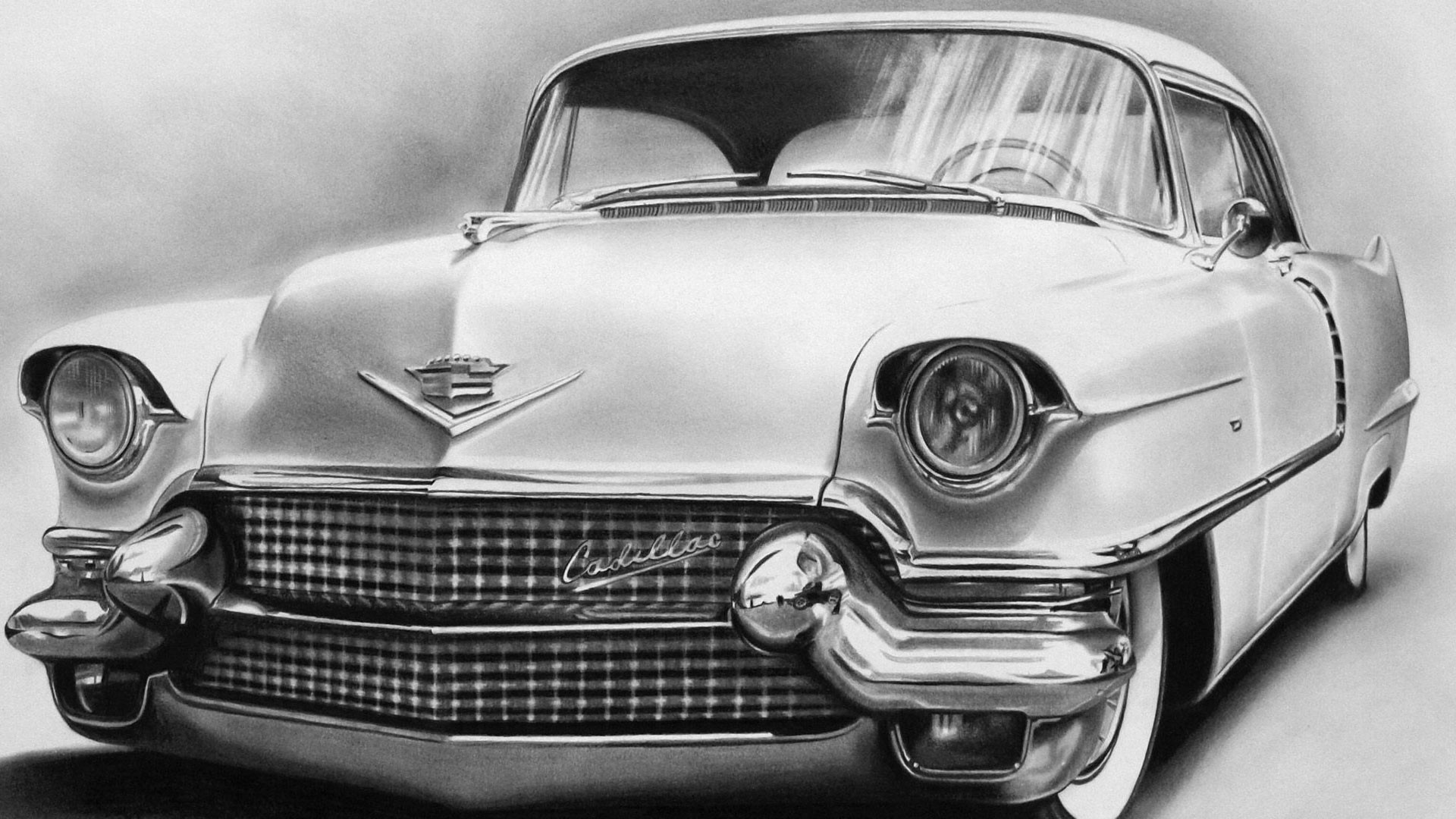 Sobre un fondo blanco, el legendario Cadillac negro elegante con tapa abierta
