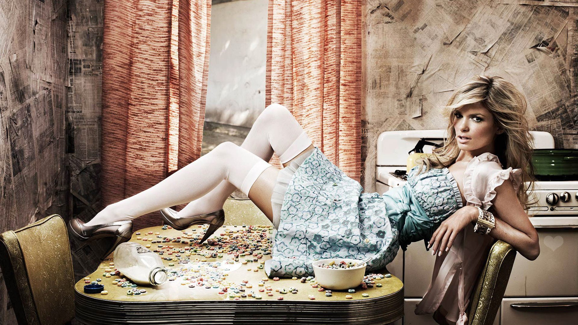 Hermosa rubia sexy en la cocina