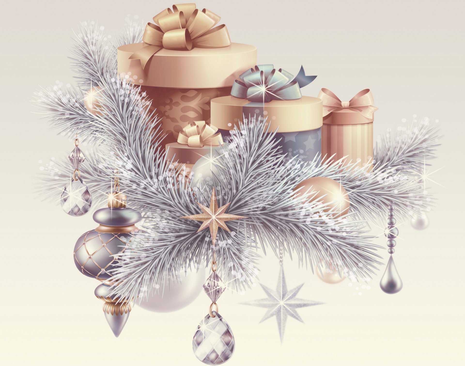Regalos y decoraciones brillantes para año nuevo y navidadRegalos y decoraciones brillantes para año Nuevo y Navidad
