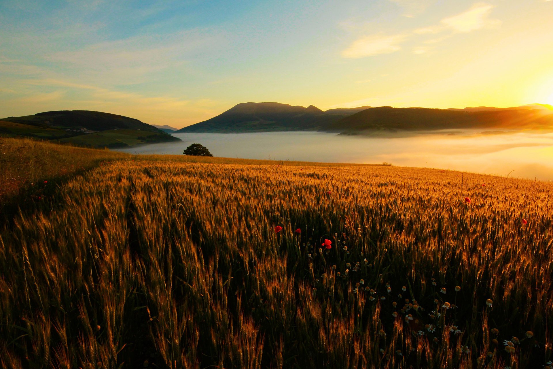 Bebé con una corona de amapolas en un campo de floresBebé con una corona de amapolas en un campo de flores