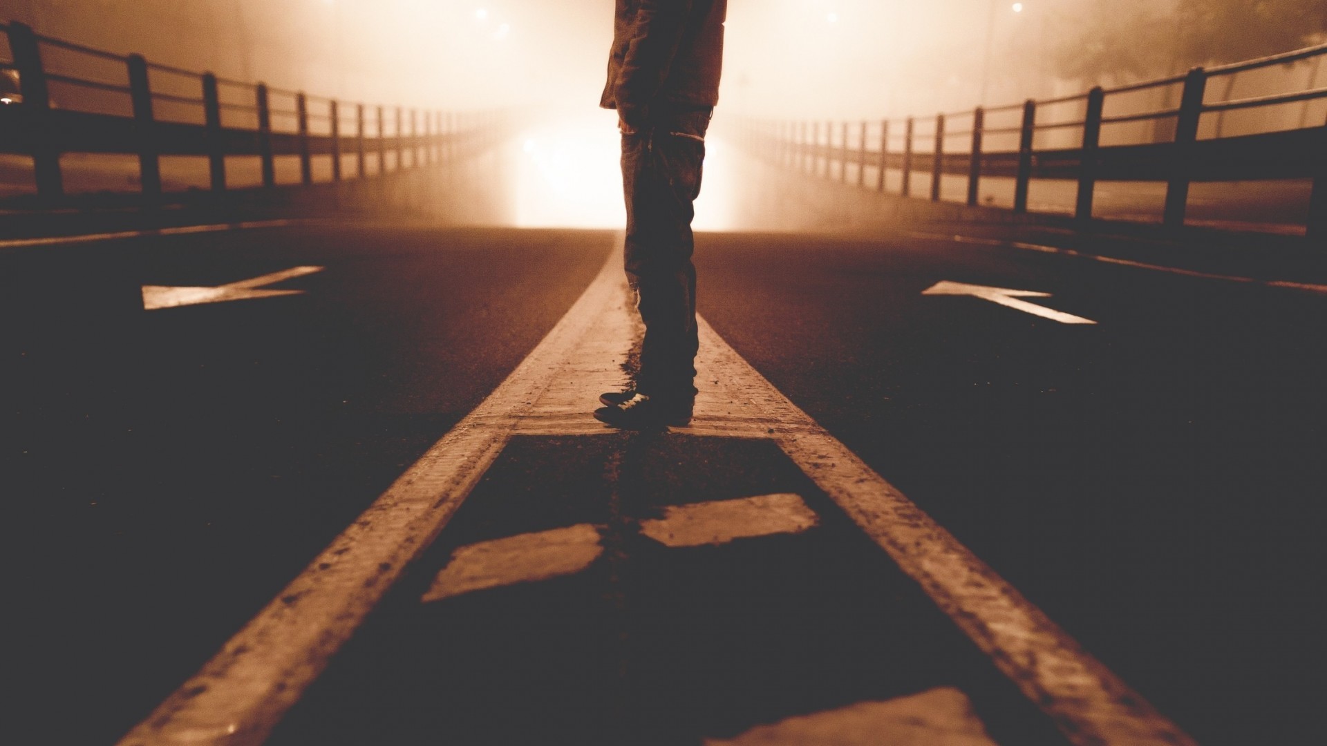 Un superdeportivo rojo en la carretera en medio del desierto frente a un paso de peatones por el que camina un hombreUn superdeportivo rojo en la carretera en medio del desierto frente a un paso de peatones por el que camina un hombre