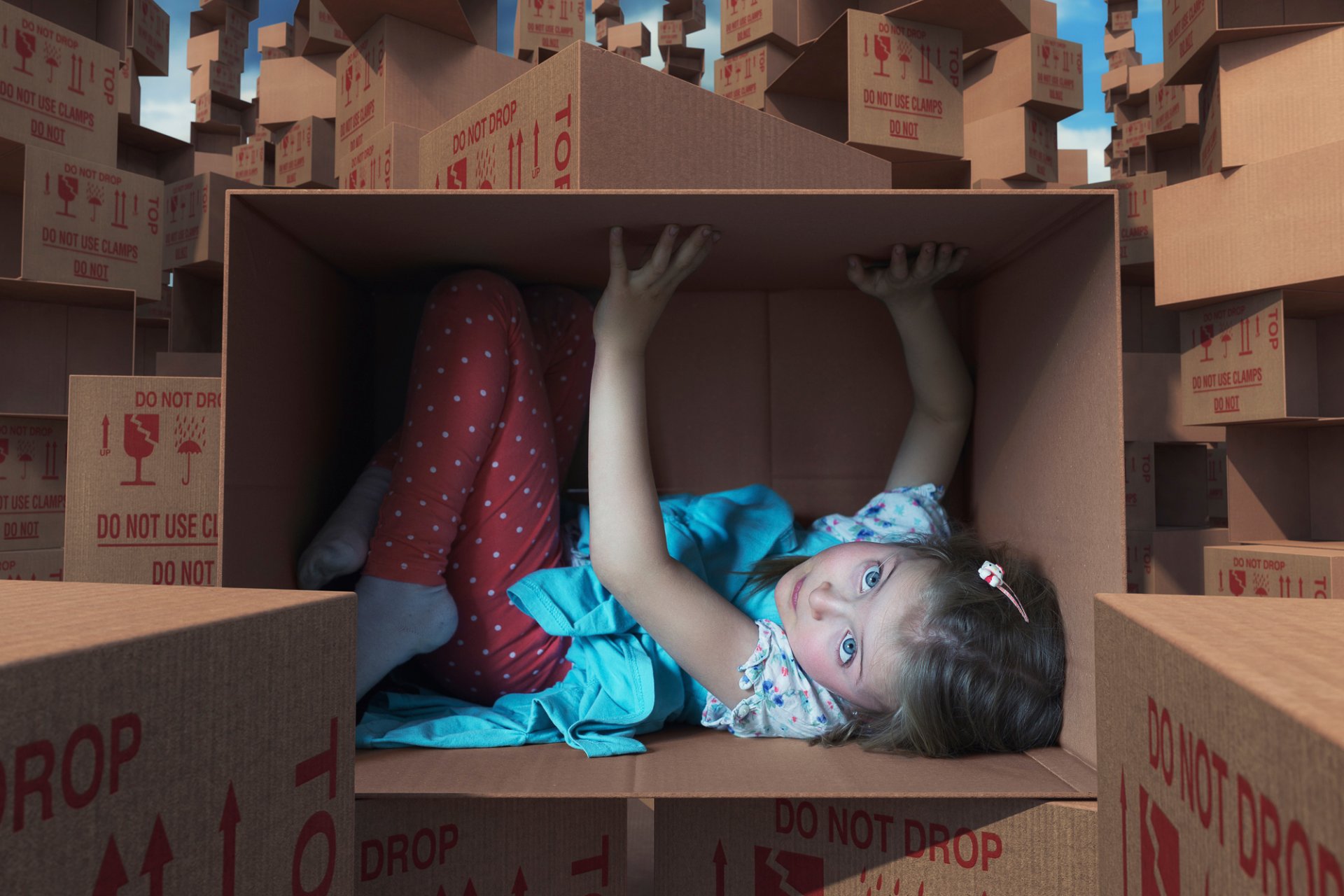 Niña en una Caja de cartón