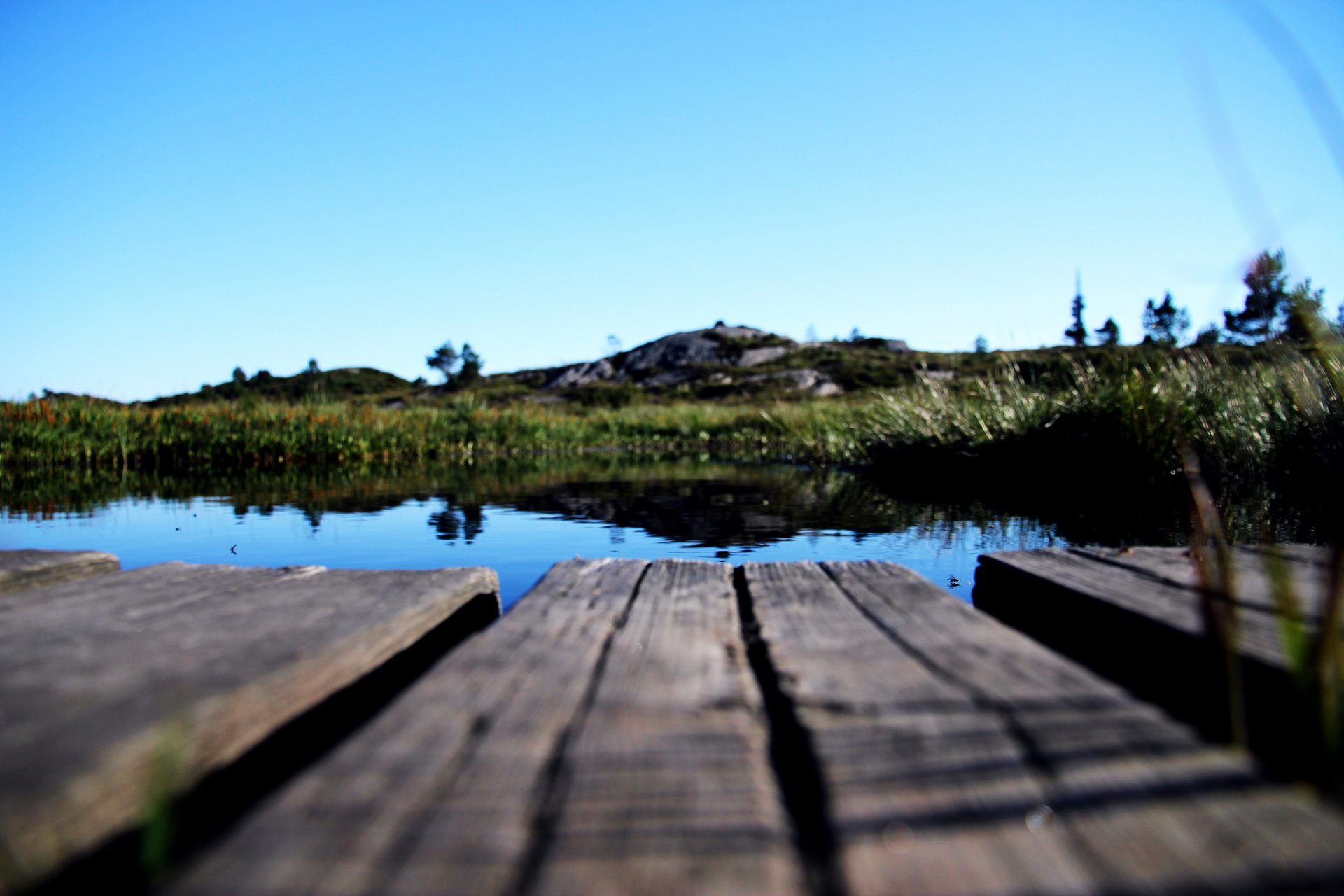 Puente cerca del lago entre las plantas en la naturalezaPuente cerca del lago entre las plantas en la naturaleza