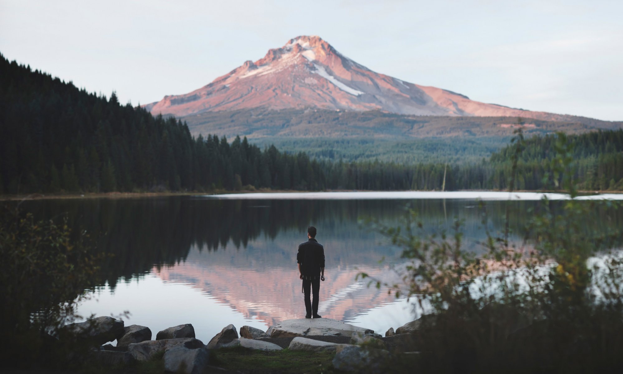 El hombre en el fondo del lago y las montañas