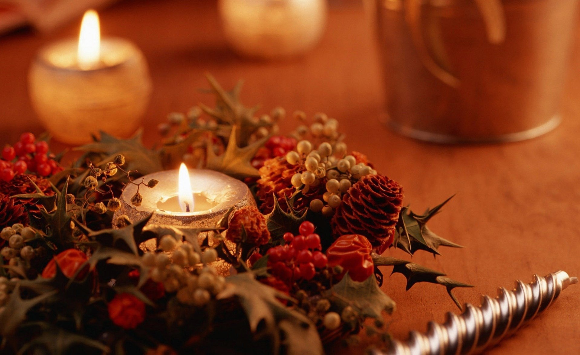 Velas a la mesa festiva foto