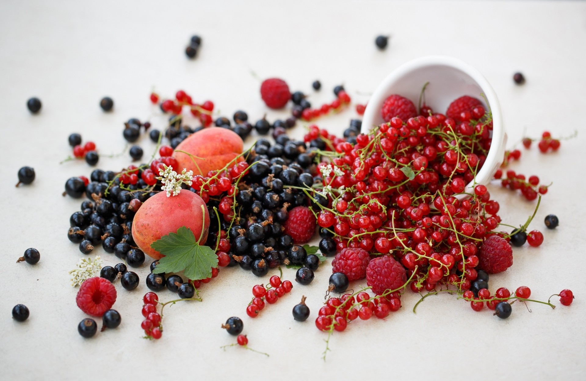 Grosellas rojas y negras con albaricoques
