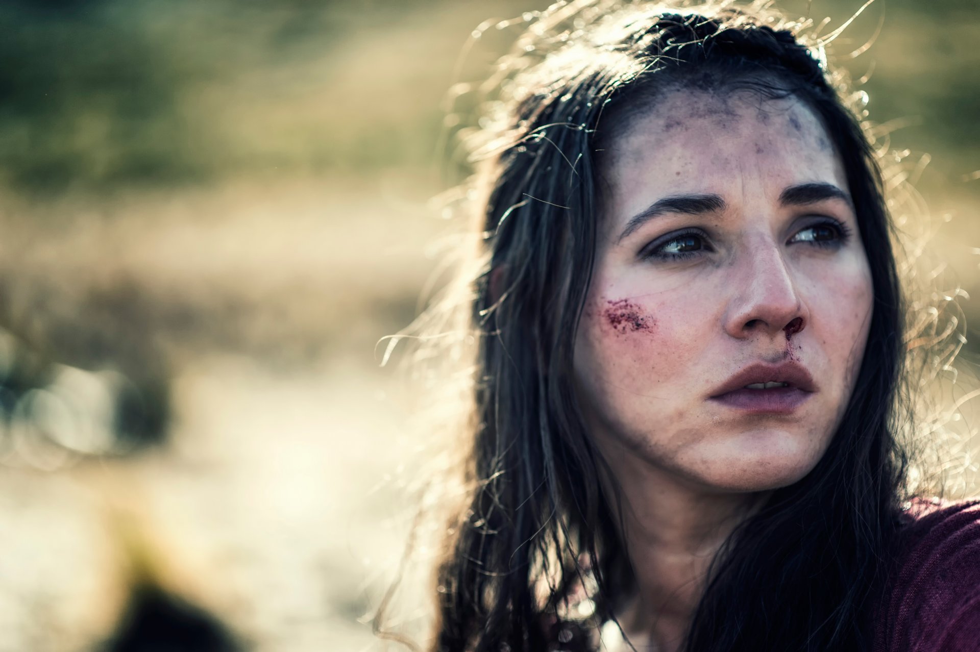 Retrato de una niña con lesiones en la cara, una mirada a lo lejosRetrato de una niña con lesiones en la cara, una mirada a lo lejos