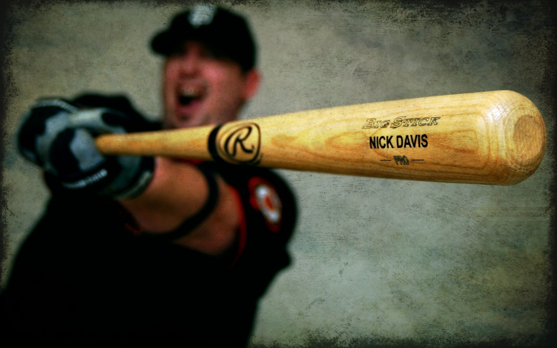 Hombre con un bate con la boca abierta contra una pared de fondoHombre con un bate con la boca abierta contra una pared de fondo