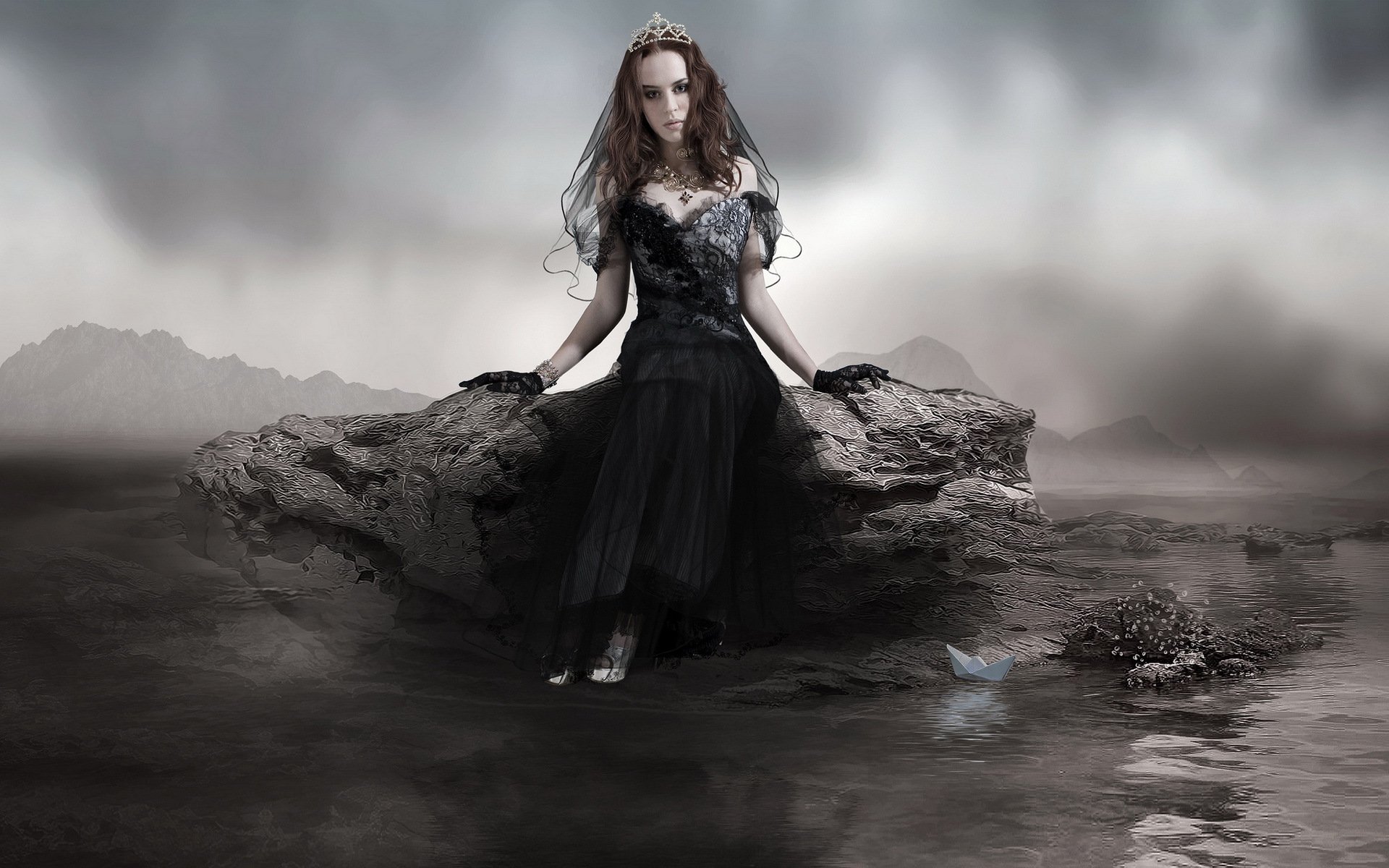 Foto de una chica con un vestido de mariposa de látexFoto de una chica con un vestido de mariposa de látex