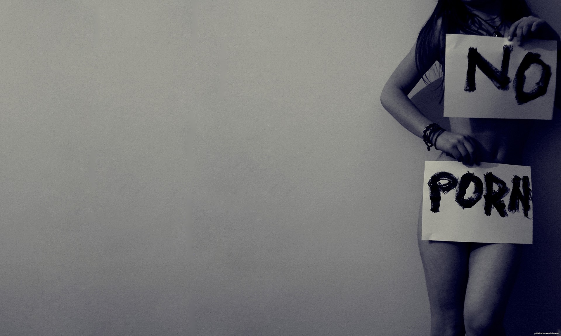 Chica en el fondo de una pared monocromática con placas contra el pornoChica en el fondo de una pared Monocromática con placas contra el porno