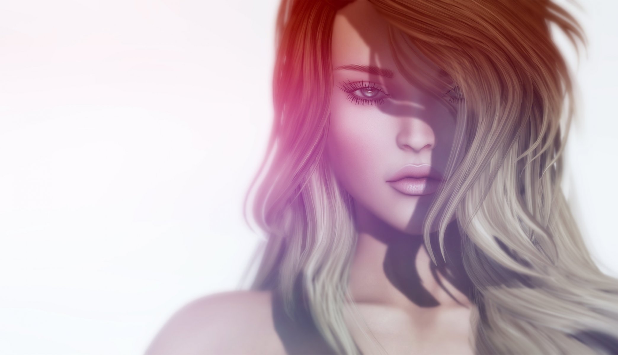 Chica de anime con el pelo azul y los ojos. un ojo cerrado por el peloChica de anime con el pelo azul y los ojos. Un ojo cerrado por el pelo
