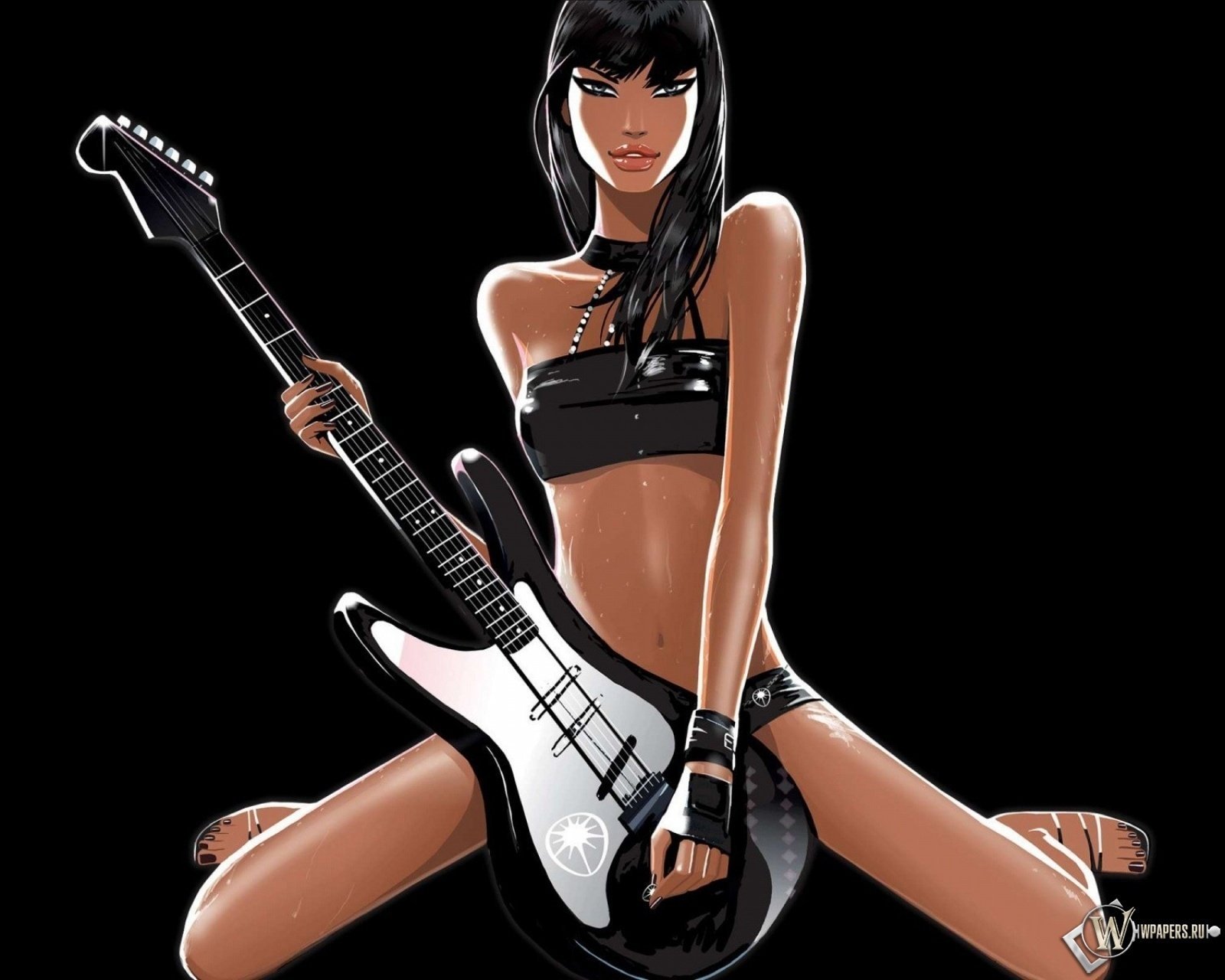 Interesante foto de una chica sexy con una guitarraInteresante foto de una chica sexy con una guitarra