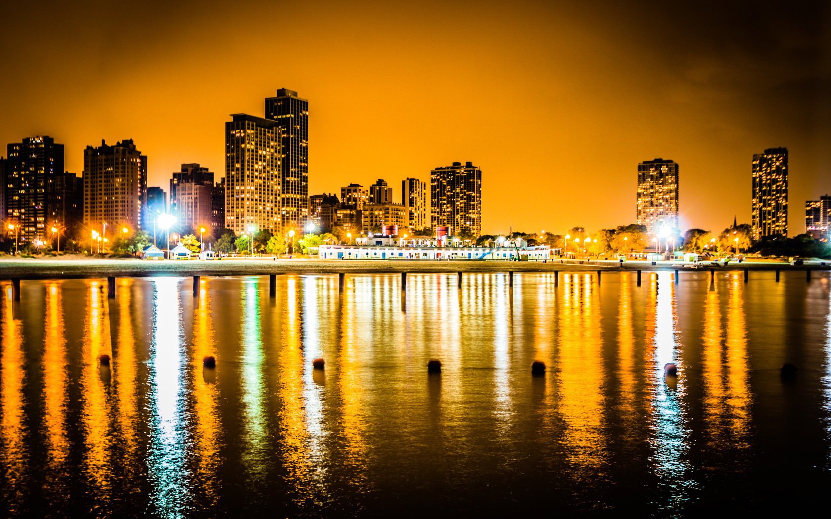 Chicago de invierno en la esfera de las linternas. vista desde el aguaChicago de invierno en la esfera de las linternas. Vista desde el agua