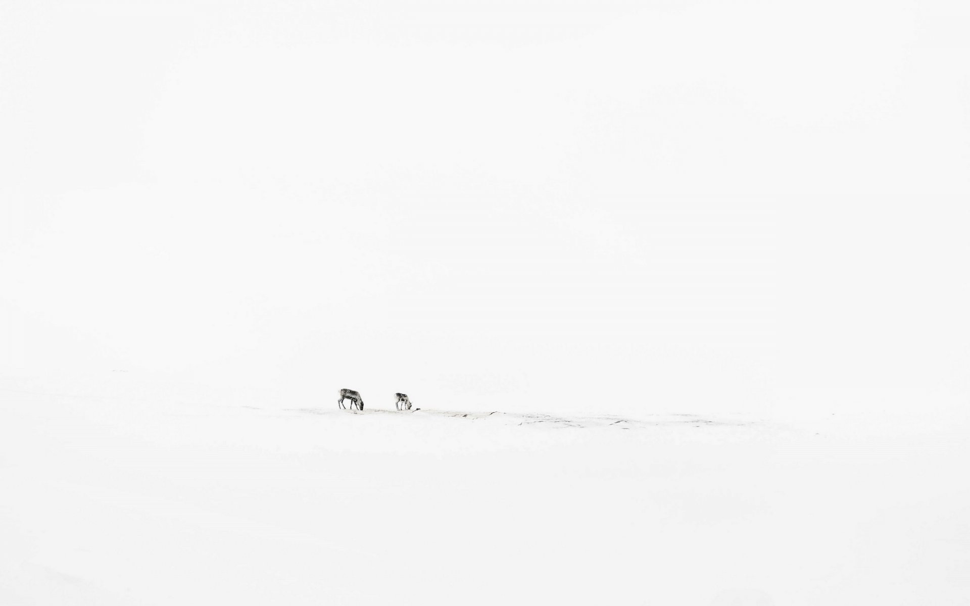 Atardecer. Un árbol de ciervos y una bandada de aves se reflejan en el agua