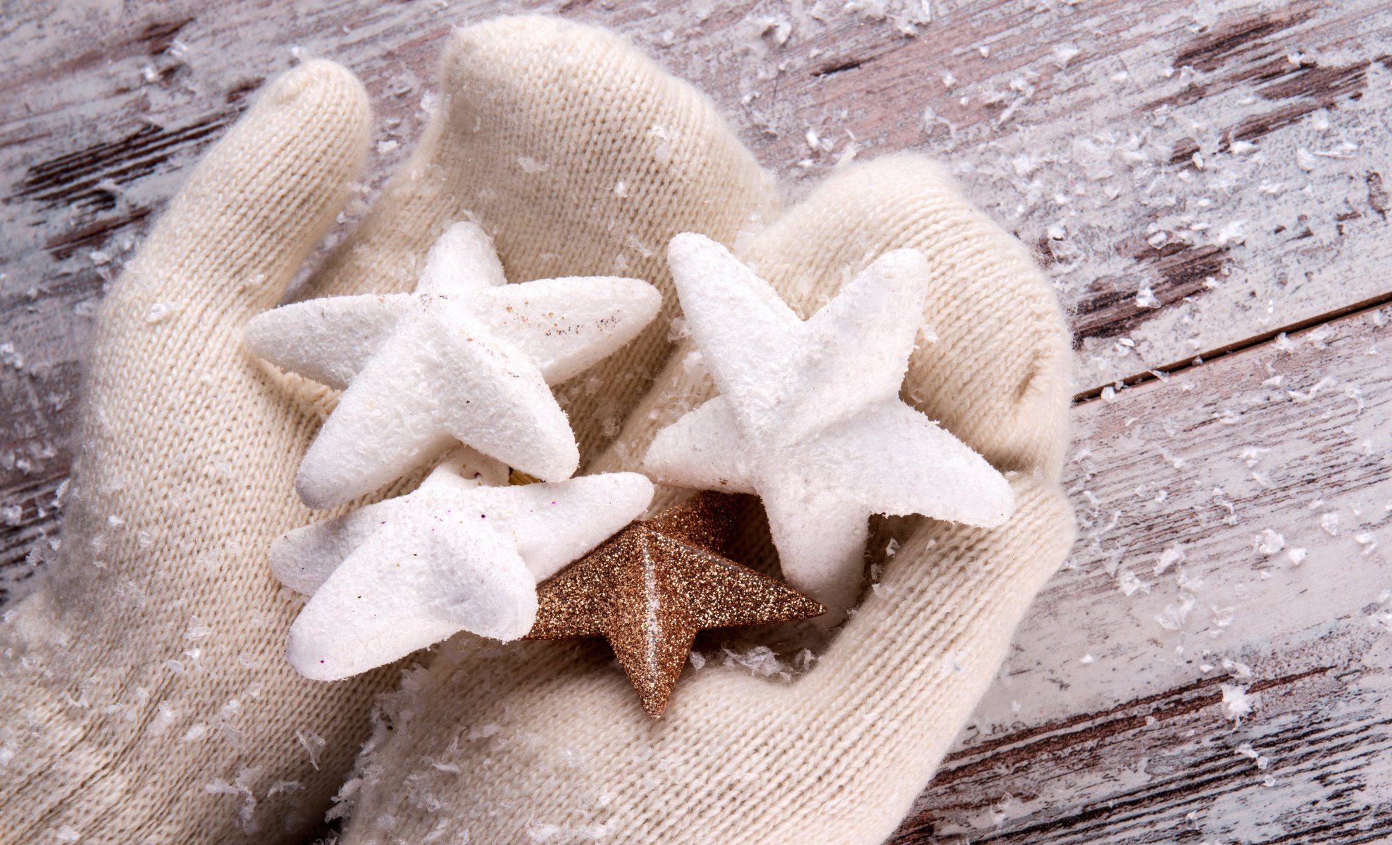Envoltorios de dulces, corazones y estrellas se encuentran en las palmas de las manosEnvoltorios de dulces, corazones y estrellas se encuentran en las Palmas de las manos