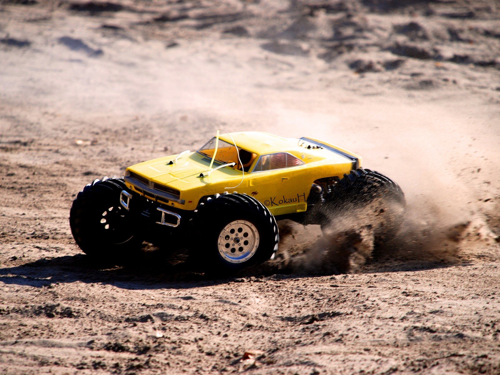 El coche de juguete hace giros graciosos