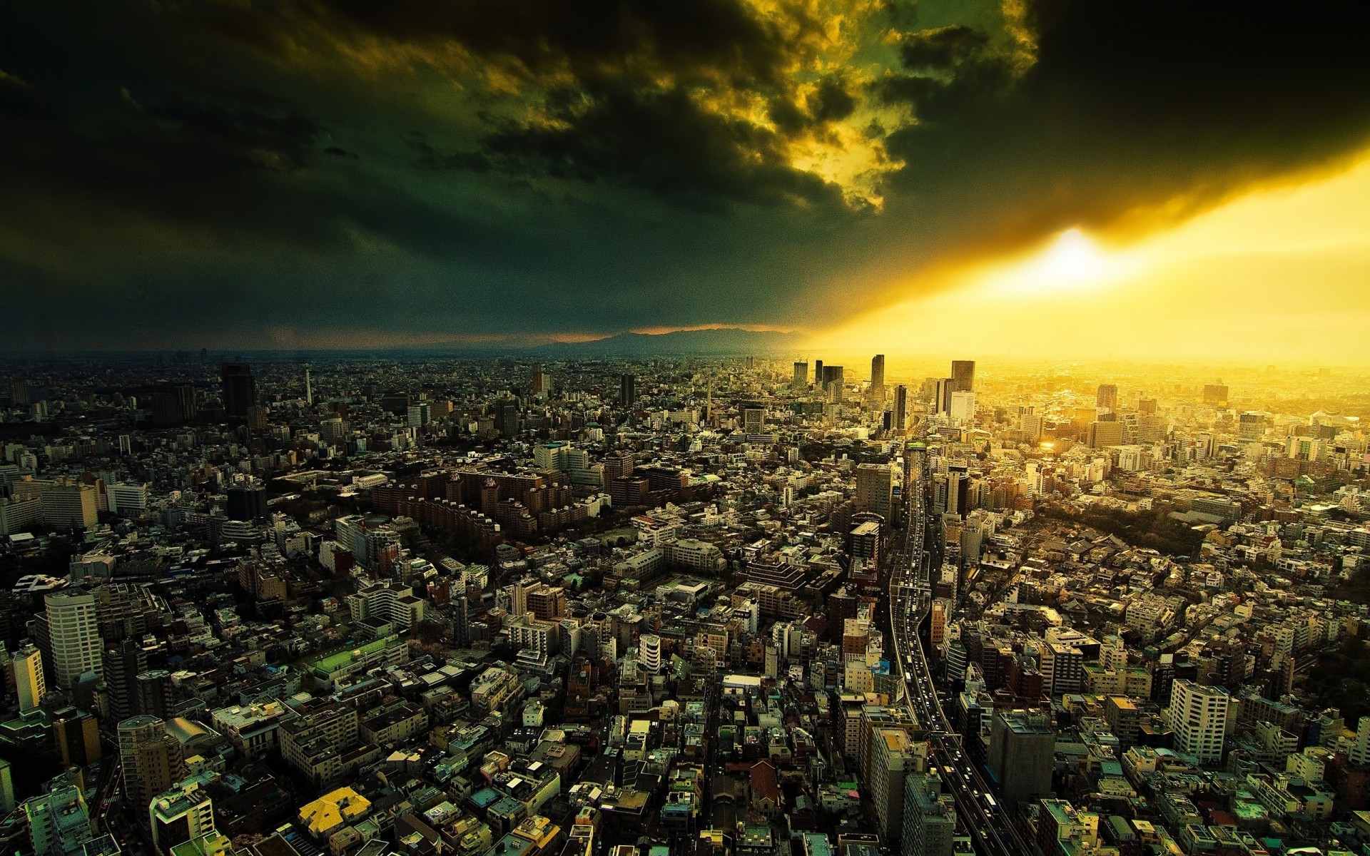 Claraboya en el cielo sobre los edificios de la ciudadClaraboya en el cielo sobre los edificios de la ciudad