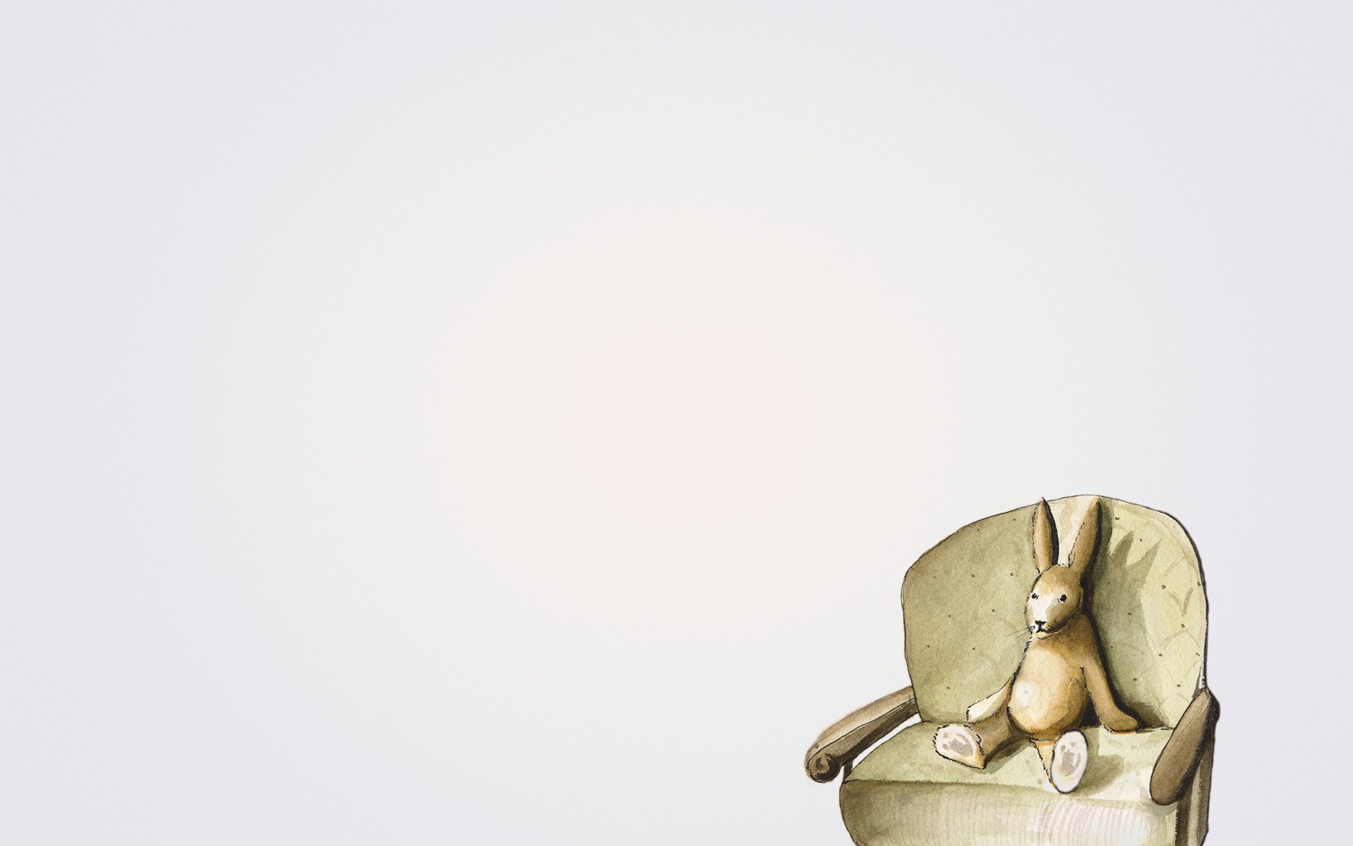 El conejo se sienta en una silla contra un fondo claroEl conejo se sienta en una silla contra un fondo claro