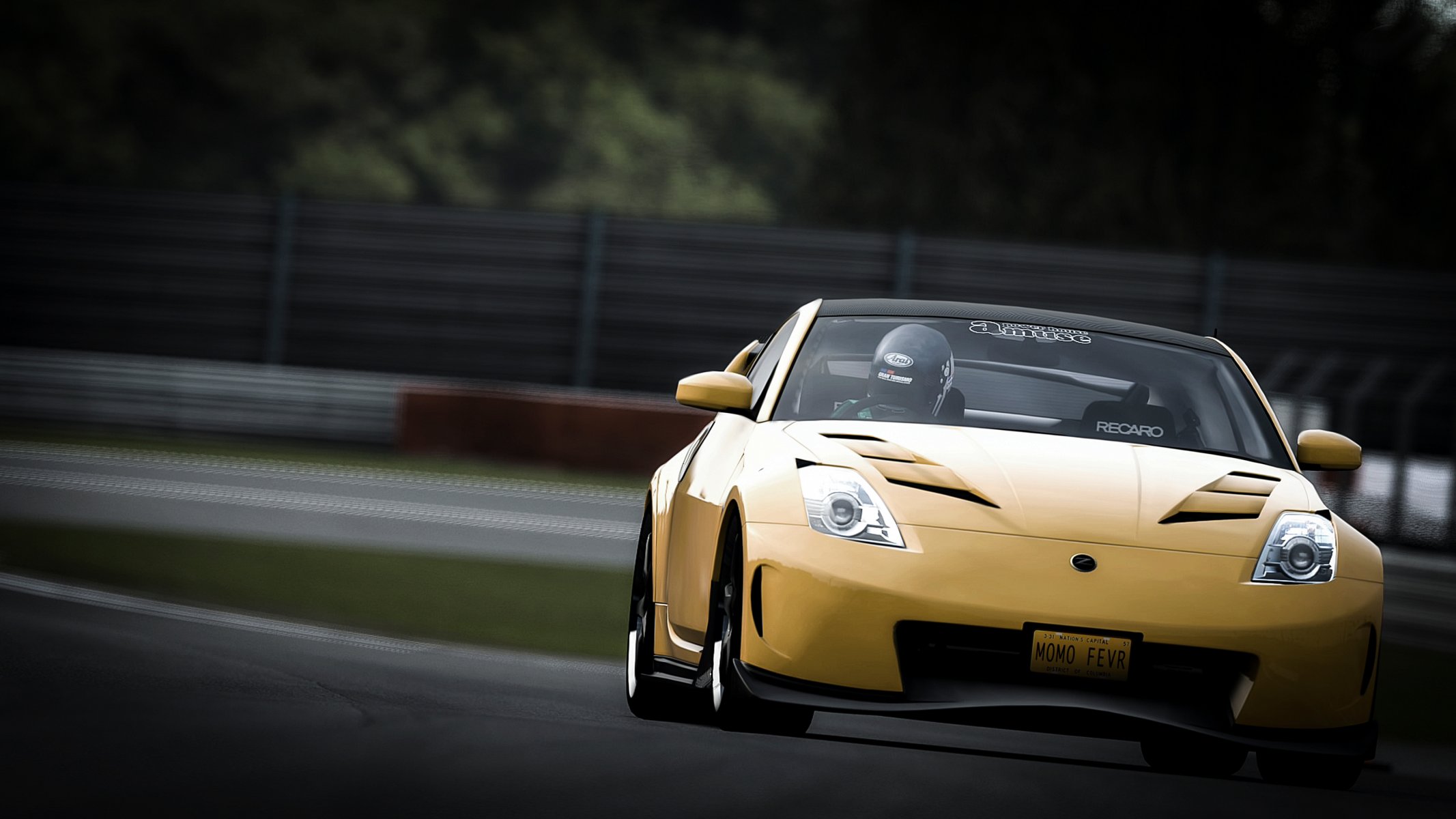 Coche de carreras deportivo con conductor en camino