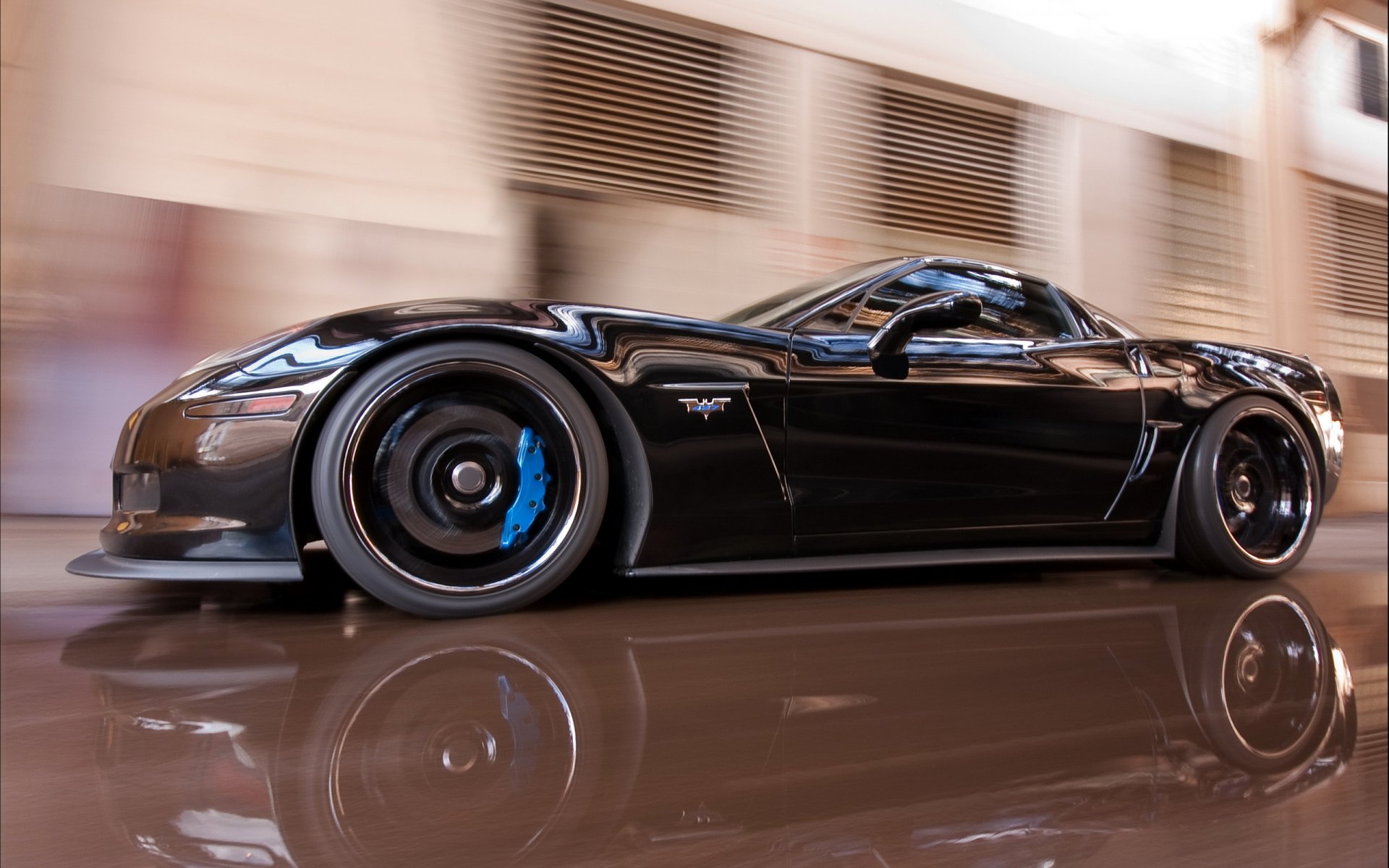 Coche negro conhevlett corvette z06 superdeportivoCoche negro conhevlett corvette Z06 superdeportivo