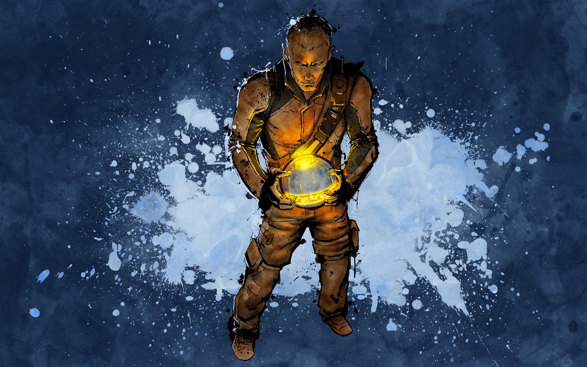 Cockle macgrath, un hombre sostiene en su mano una bola luminosa sobre un fondo azul oscuro