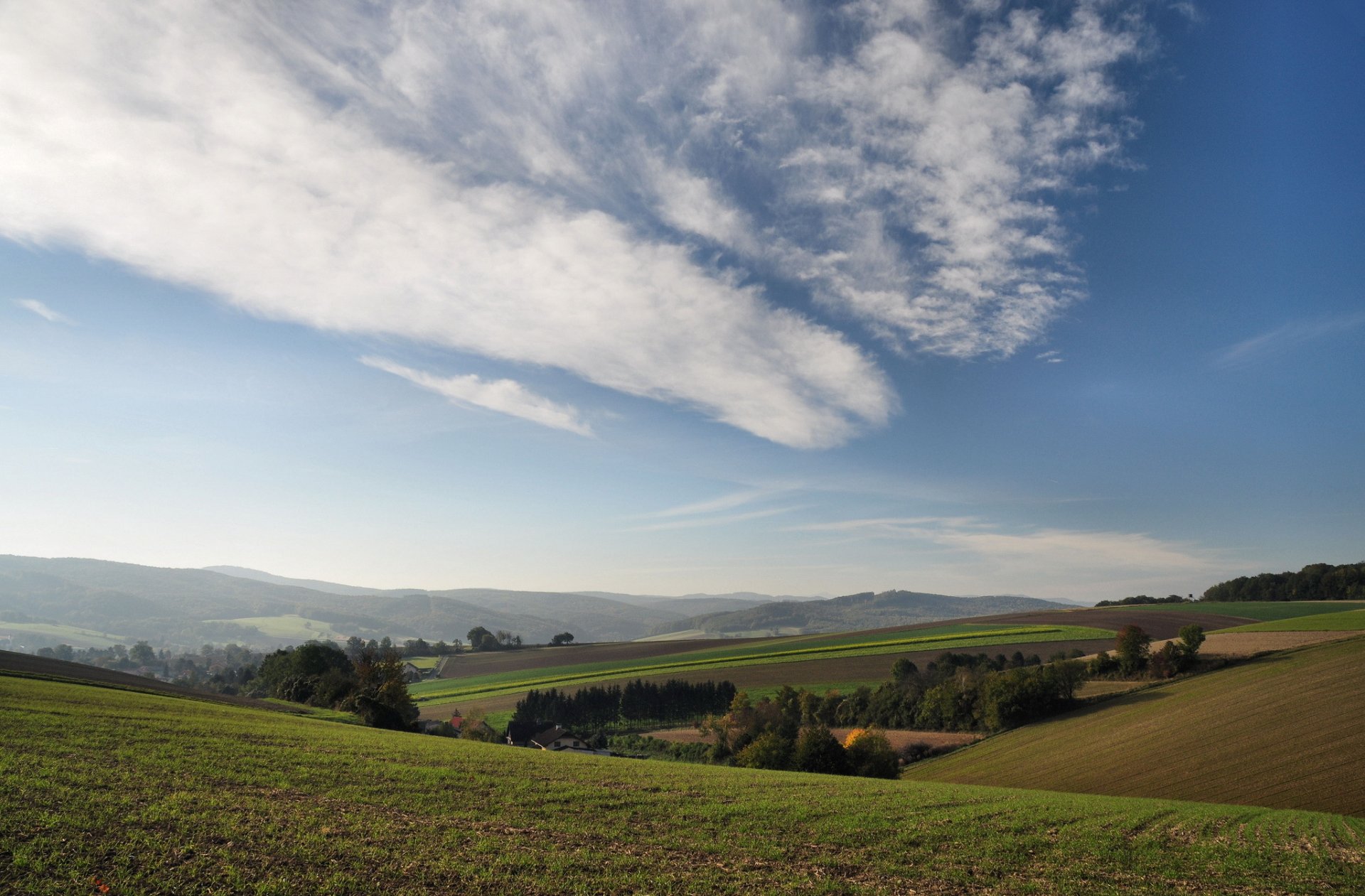 Paisaje verde tour en medio de las colinas y el cieloPaisaje verde Tour en medio de las colinas y el cielo
