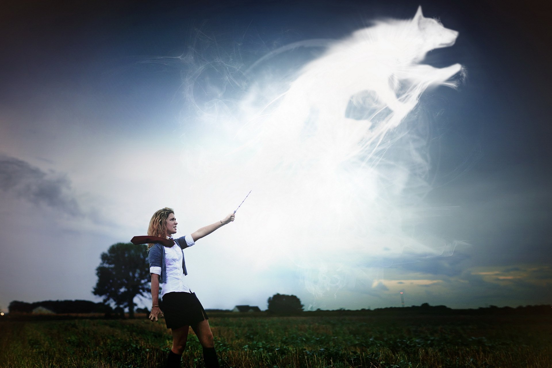 Grupo fábrica todo en vestidos blancos en el fondo de la praderaGrupo fábrica todo en vestidos blancos en el fondo de la pradera