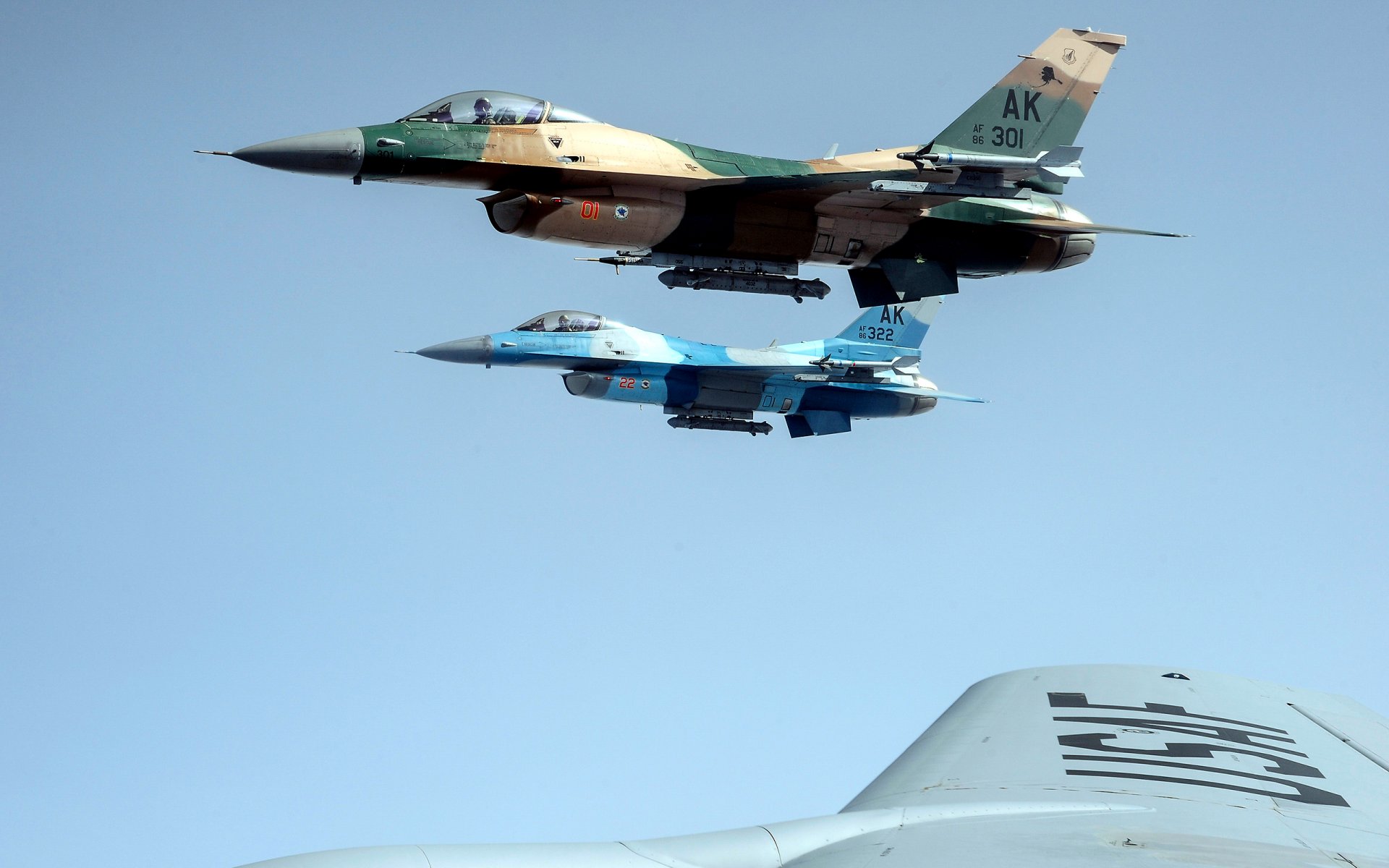 Vuelo de dos aviones militares sobre terreno verdeVuelo de dos aviones militares sobre terreno verde