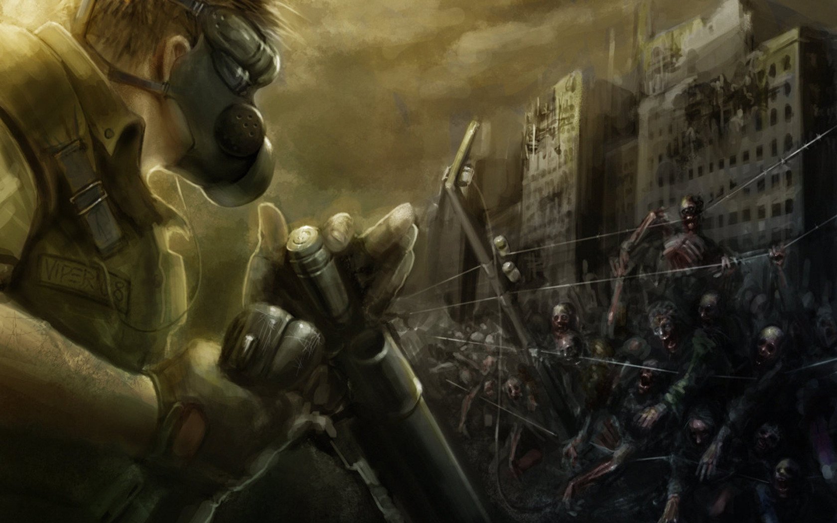 Hombre con máscara de gas en medio de una explosiónHombre con máscara de gas en medio de una explosión