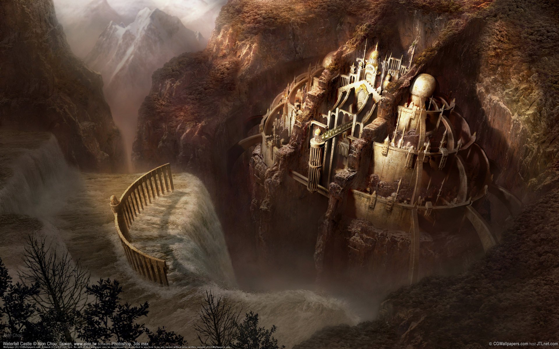 Amanecer en las montañas, donde hay un bosque y un lagoAmanecer en las montañas, donde hay un bosque y un lago