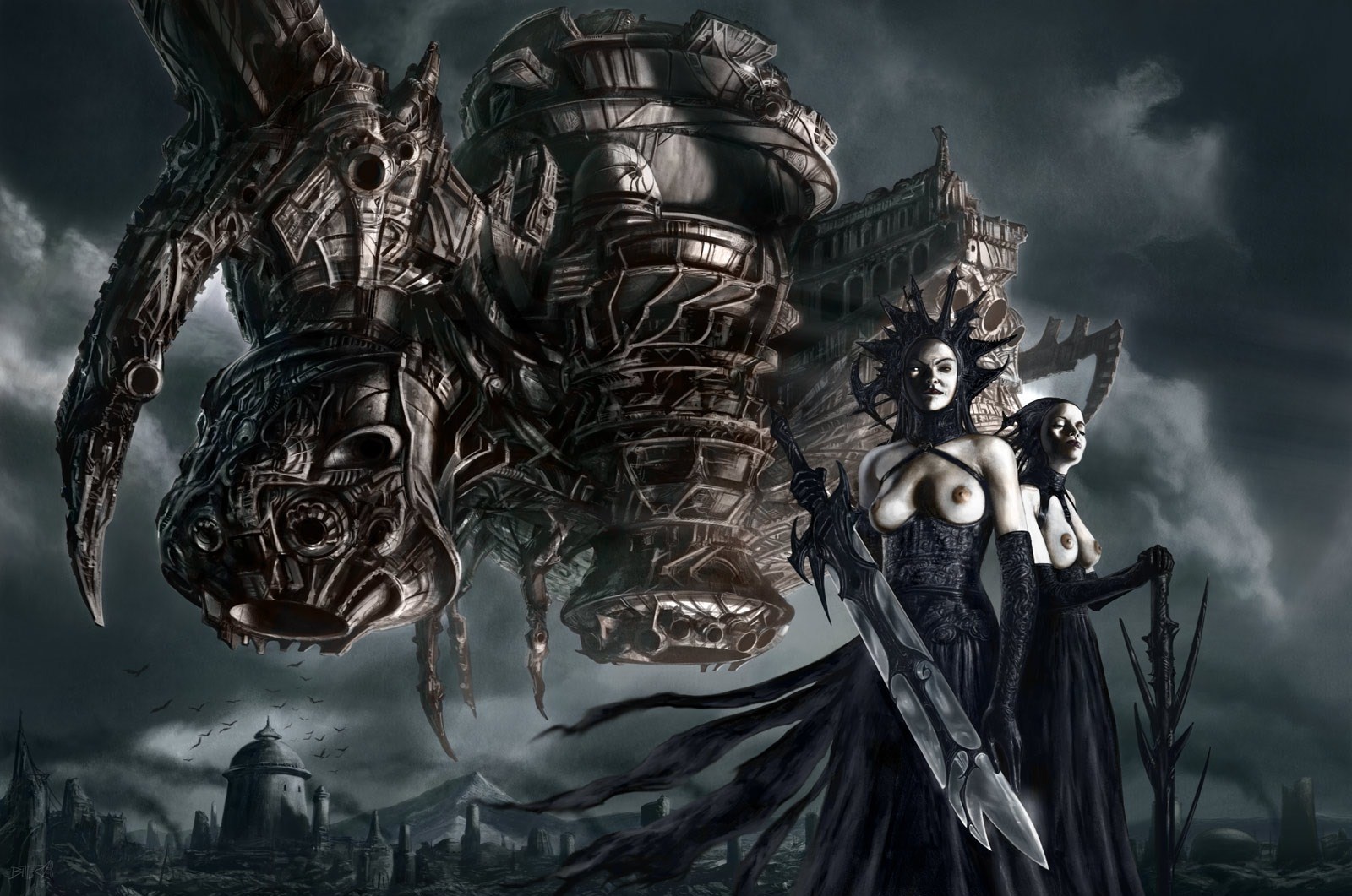 Guerreras defendiendo la ciudad con el pecho desnudo