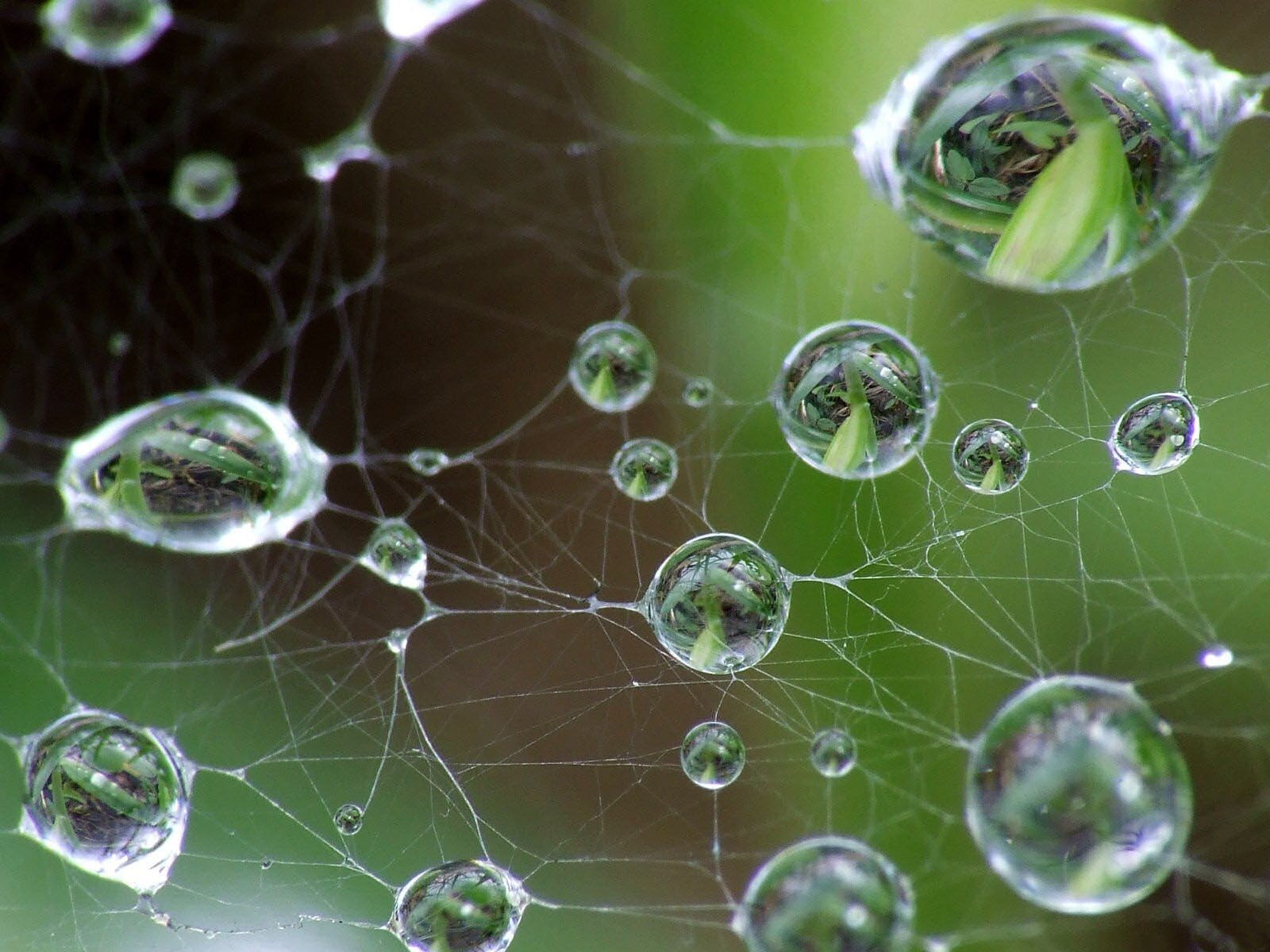 Pon el rocío en la telaraña. reflejo de detalles en una gotaPon el rocío en la telaraña. Reflejo de detalles en una gota