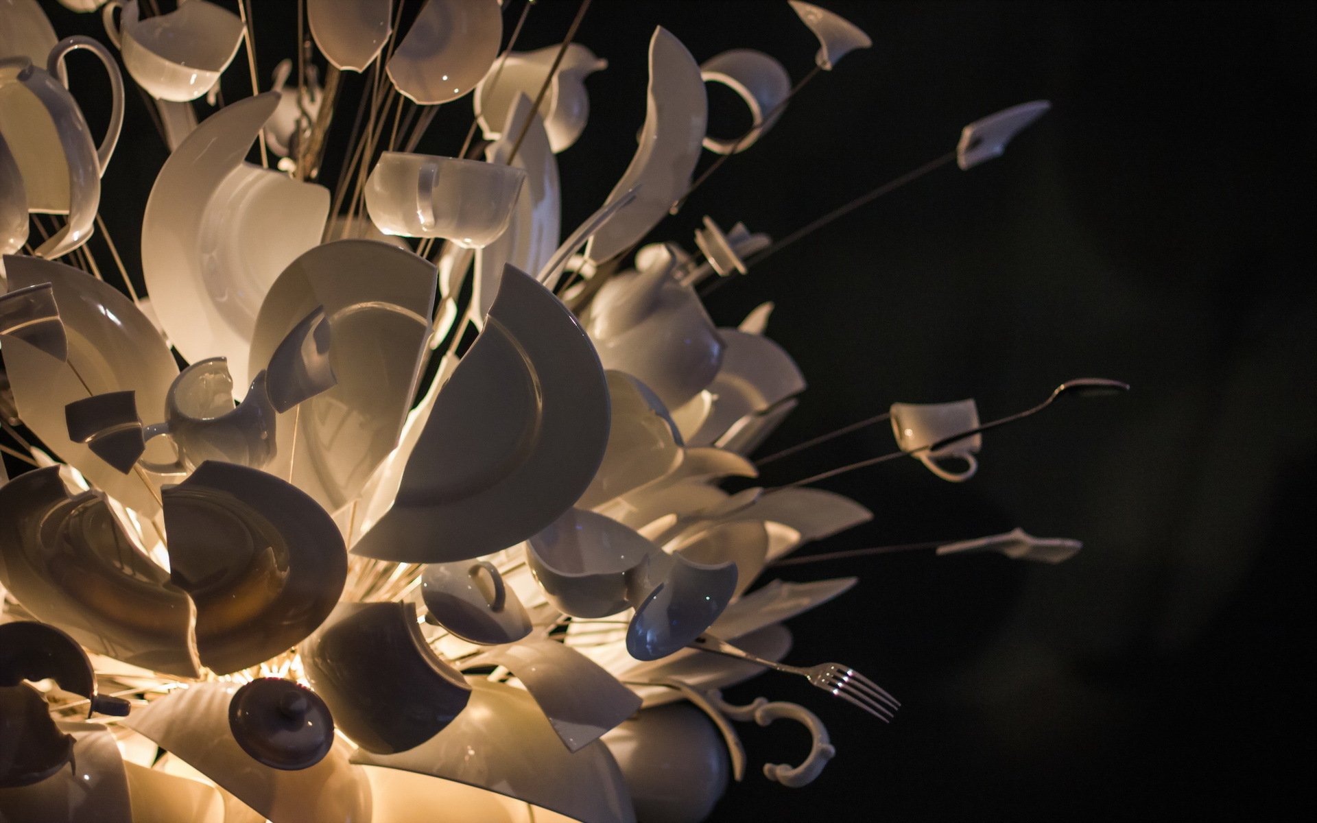 Los utensilios rotos y los electrodomésticos se dispersan en diferentes direccionesLos utensilios rotos y los electrodomésticos se dispersan en diferentes direcciones