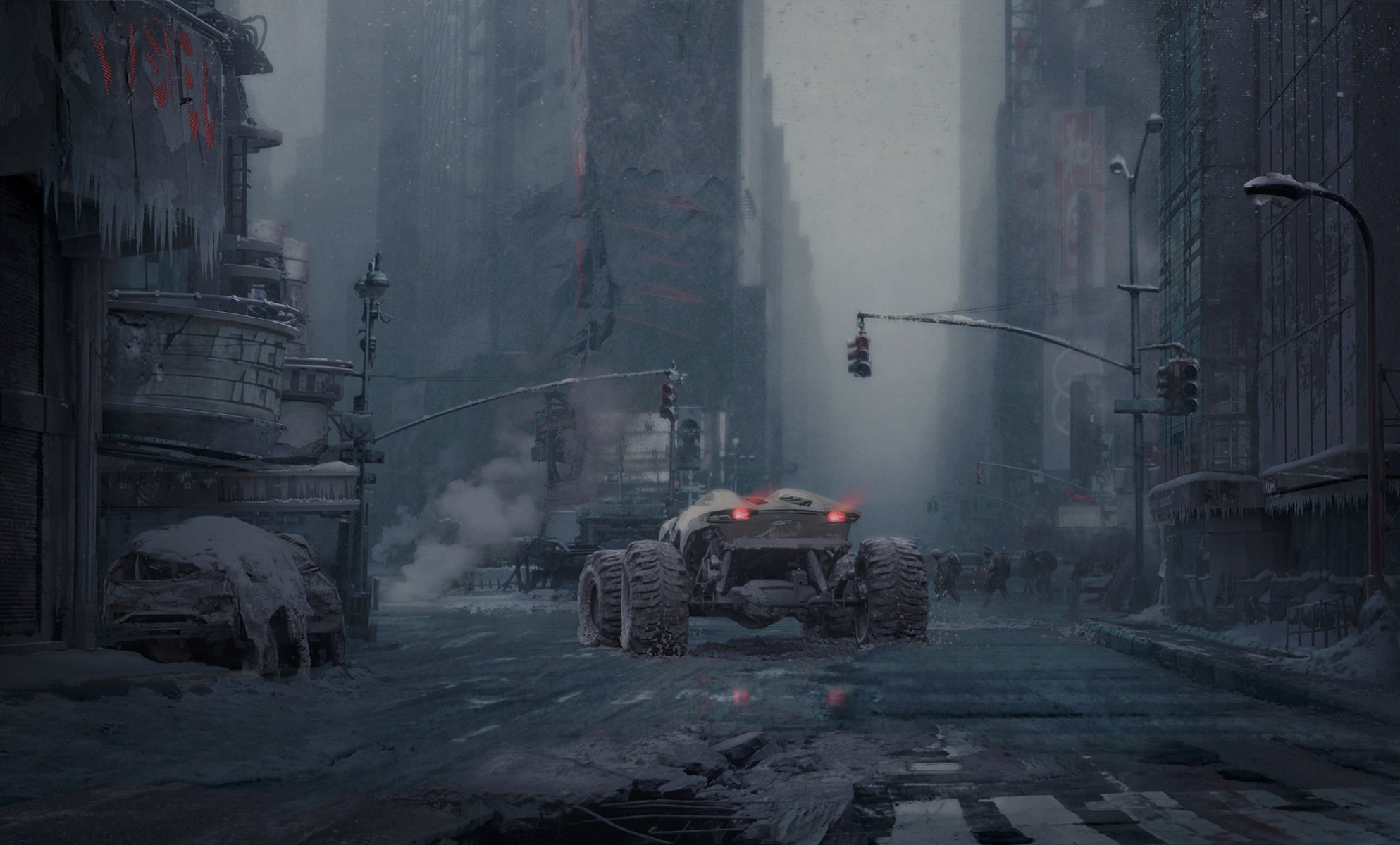 Imagen de una ciudad post-apocalíptica en ruinas bajo la lluviaImagen de una ciudad post-apocalíptica en ruinas bajo la lluvia