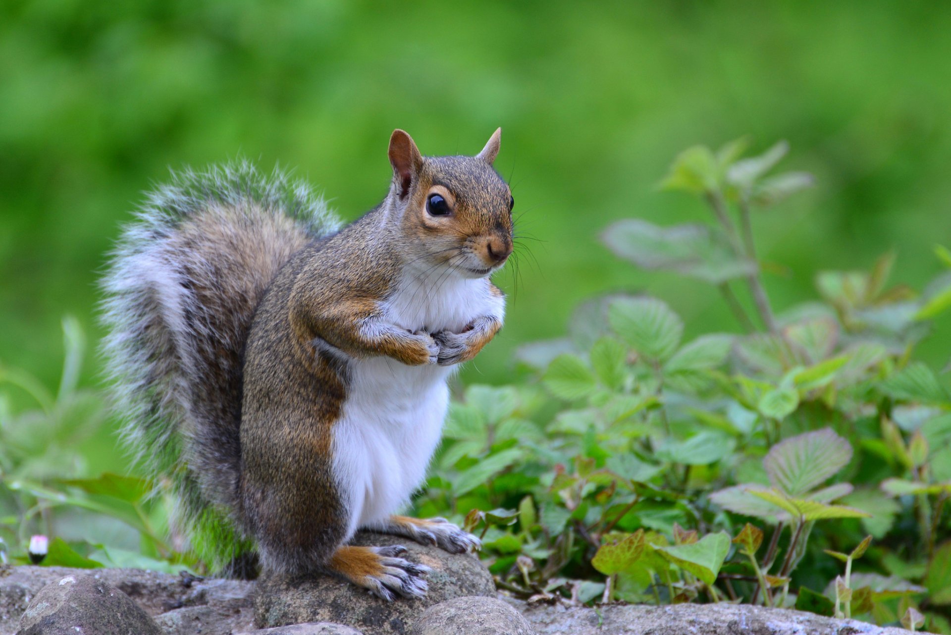 Fondo verde, directamente la hierba, en ella un gatito gris