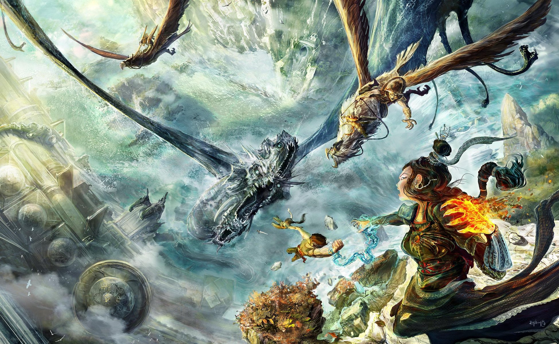 Criaturas fabulosas mirando la ciudad