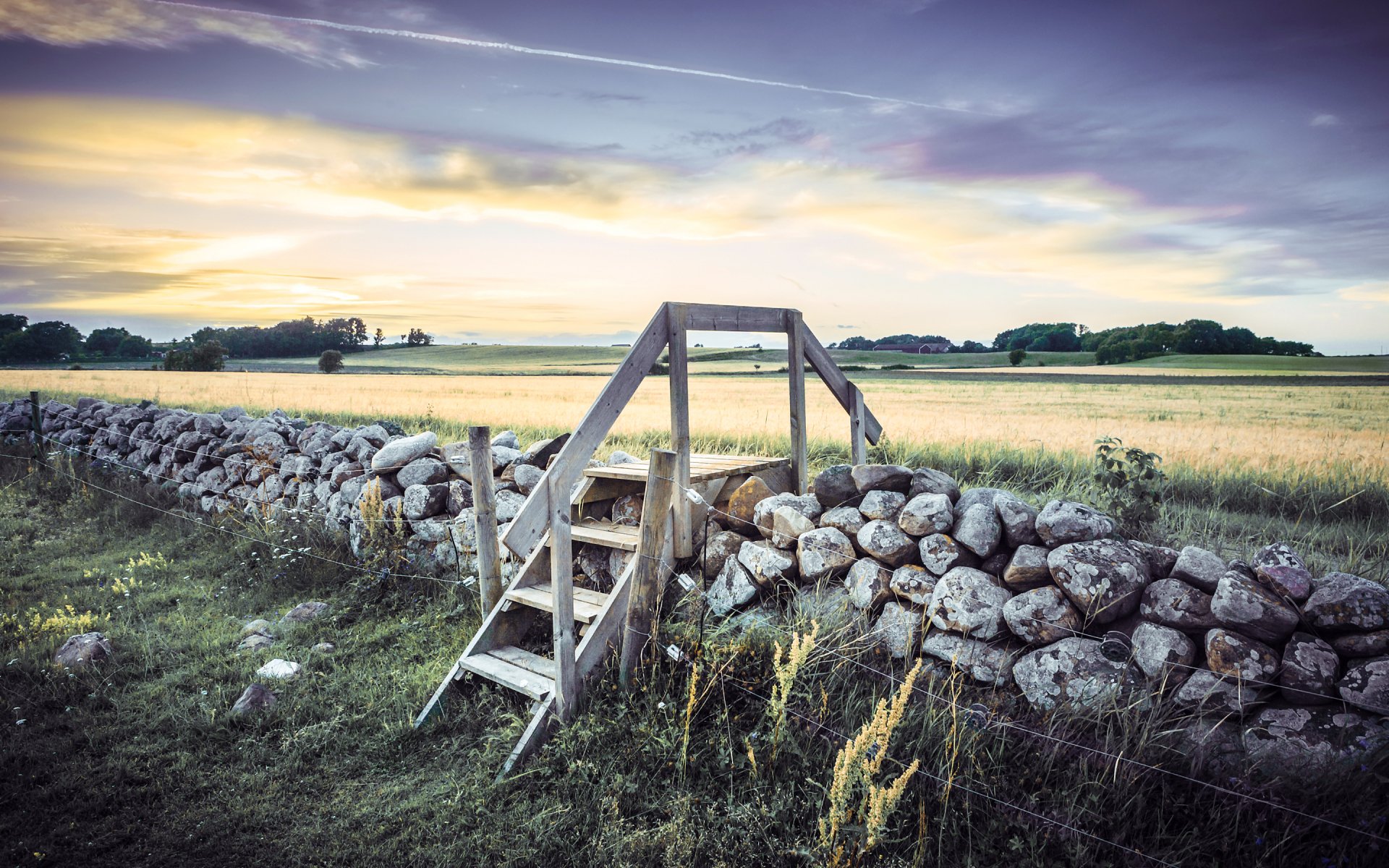 Entrada, paredes escarpadas, escaleras a la parte superiorEntrada, paredes escarpadas, escaleras a la parte superior