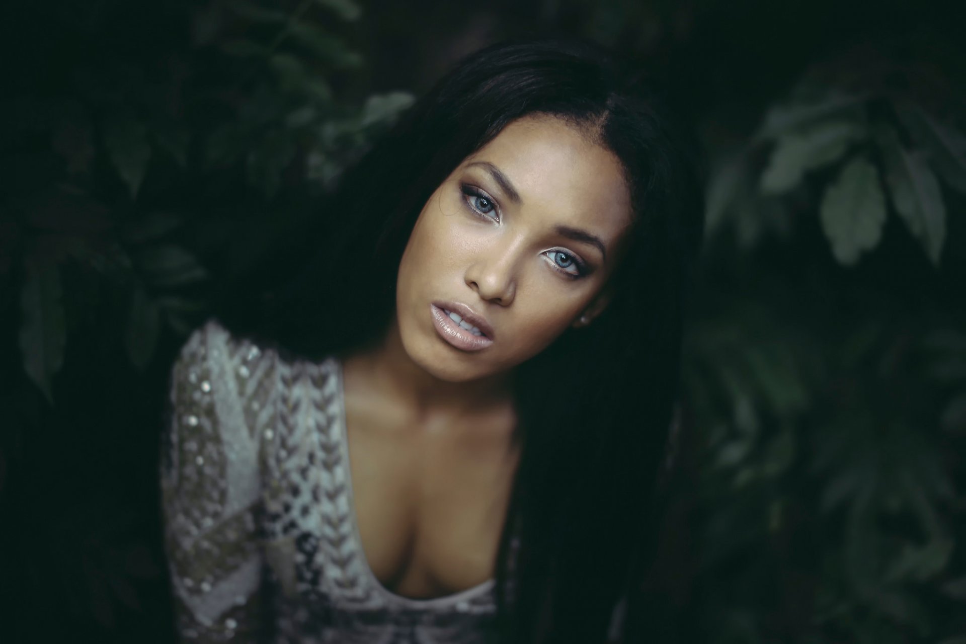 Chica de ojos marrones con escote y la luz del solChica de ojos marrones con escote y la luz del sol
