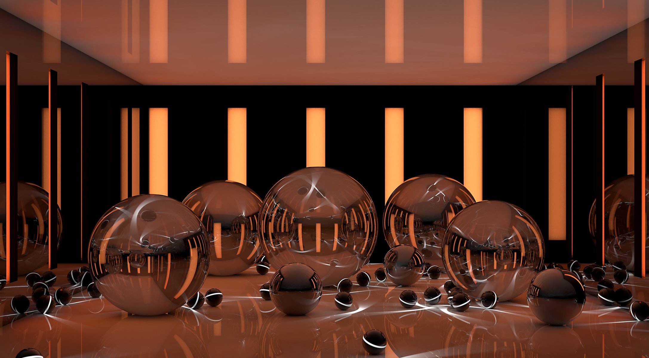 Reflejo de esferas metálicas en la oscuridad